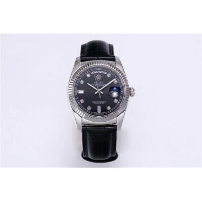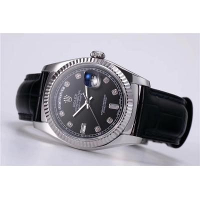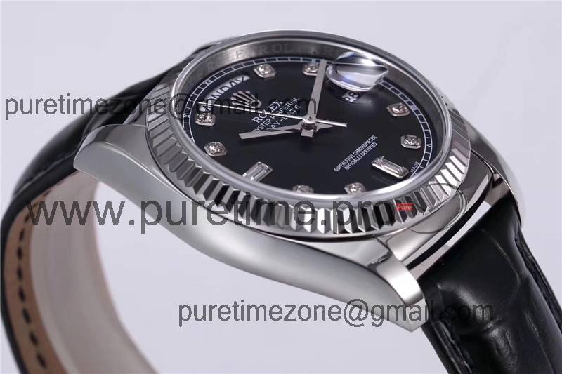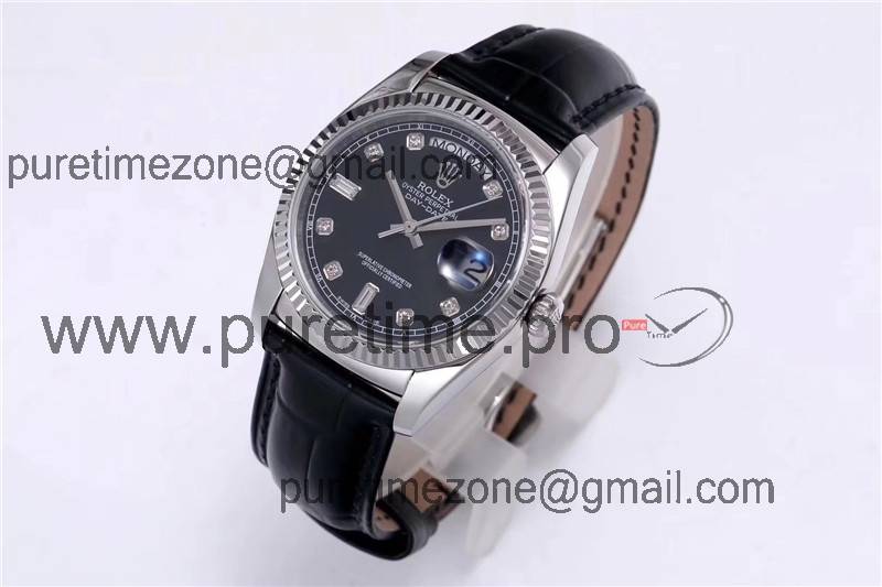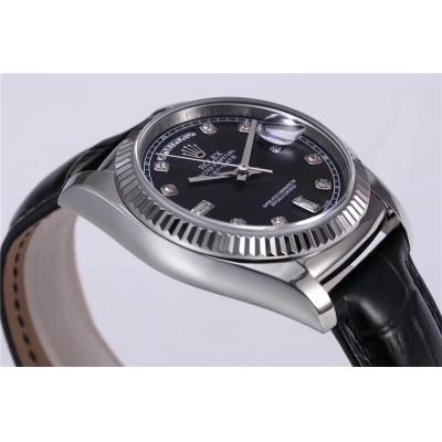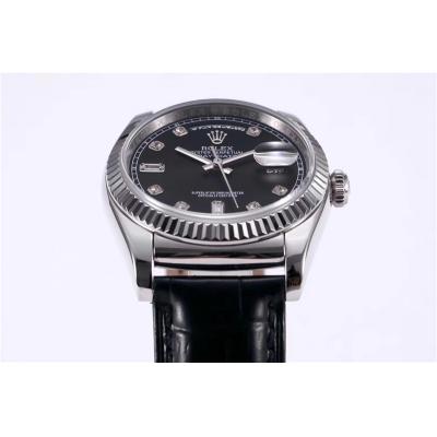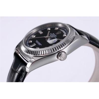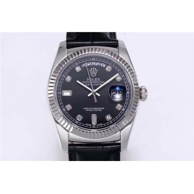 Home Rolex Day-Date TRF Day-Date 118139 36mm A2836 Automatic Mens Watch Black Dial Diamond Black Leather Best Edition