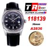 TRF Day-Date 118139 36mm A2836 Automatic Mens Watch White Dial Diamond Blue Leather Best Edition