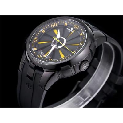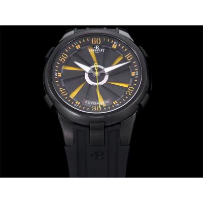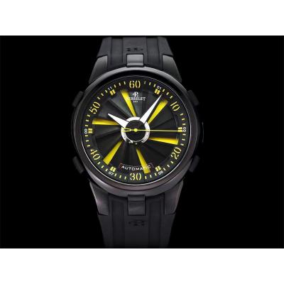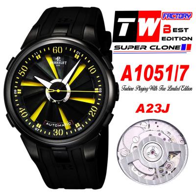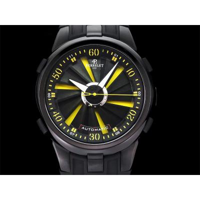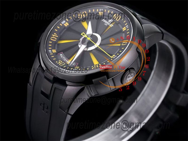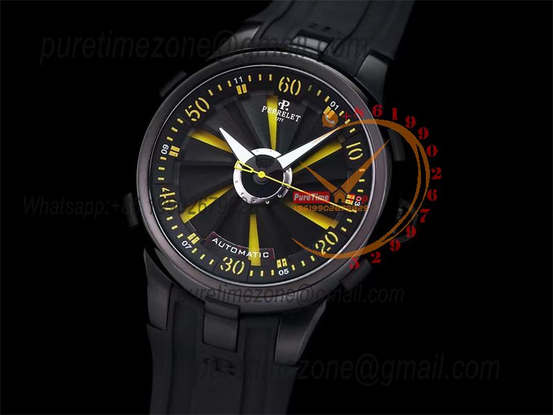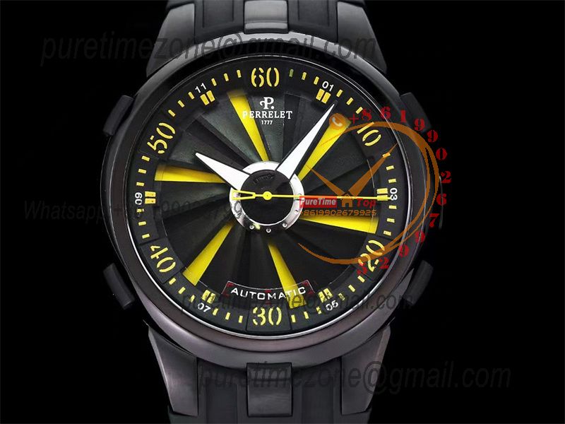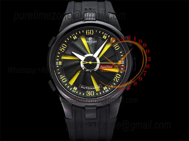 Home Perrelet Turbine XL A1051/7 A23J Automatic Mens Watch TWF DLC All Black Yellow Rotating Dial Rubber Strap