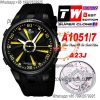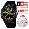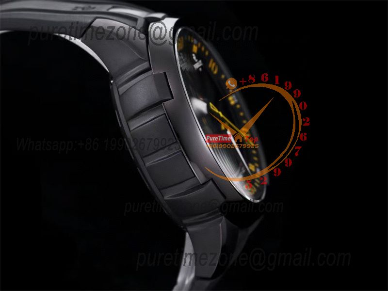 Turbine XL A1051/7 A23J Automatic Mens Watch TWF DLC All Black Yellow Rotating Dial Rubber Strap