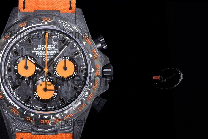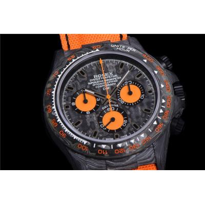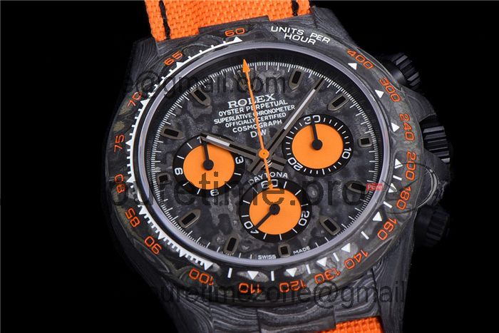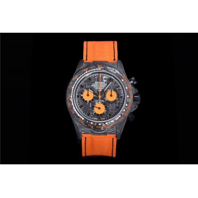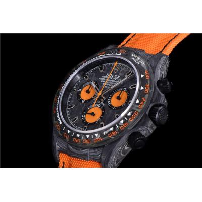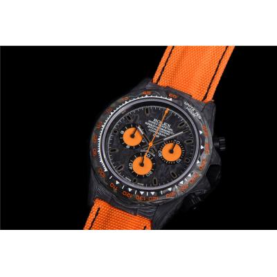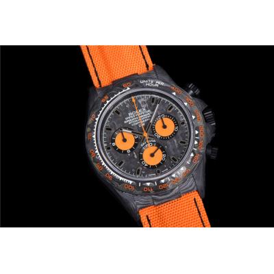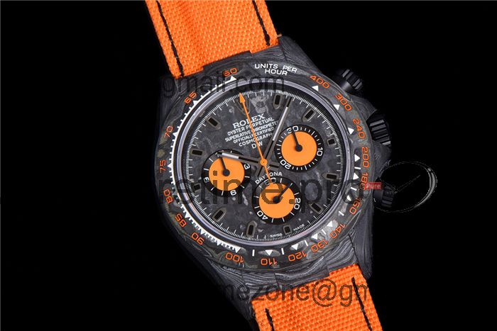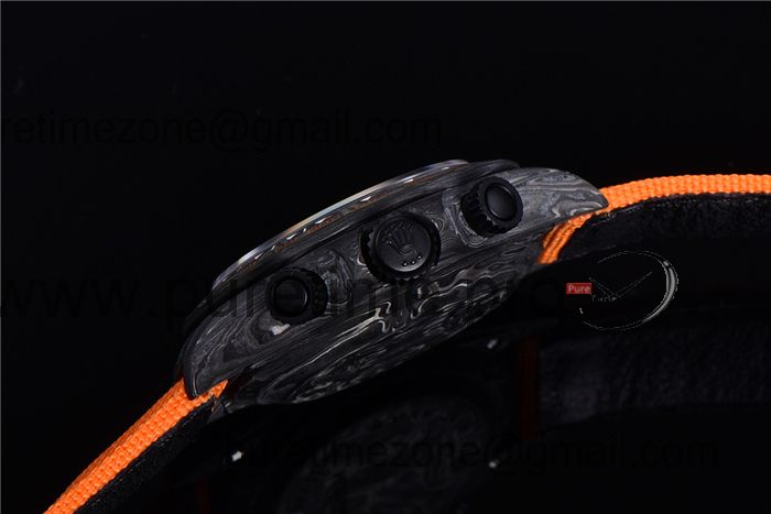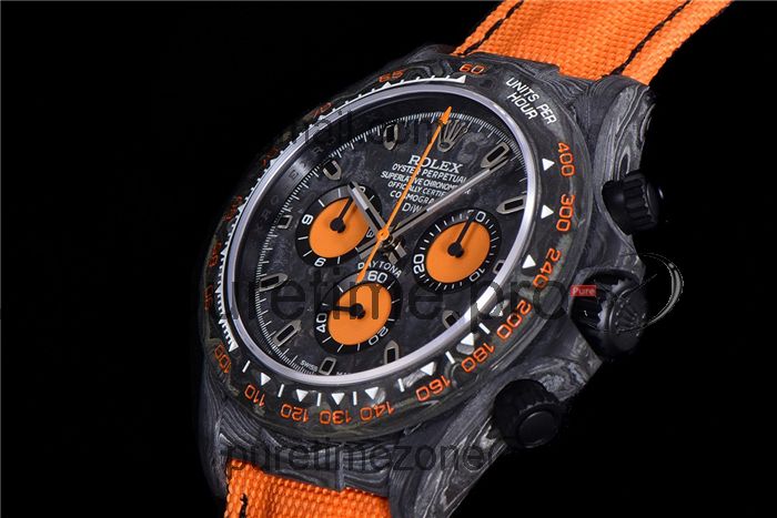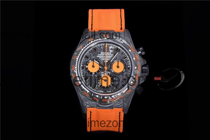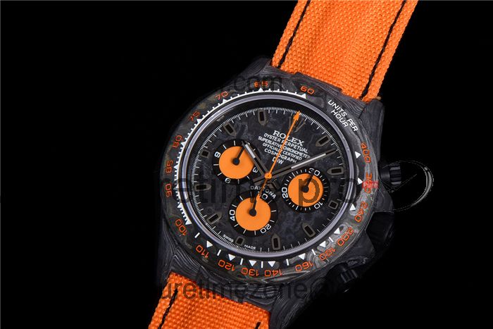 Home Rolex Daytona Cosmograph TWF Daytona DIW A7750 Automatic Mens Watch Black Case and Bezel Black Dial Orange Nylon Strap Best Edition