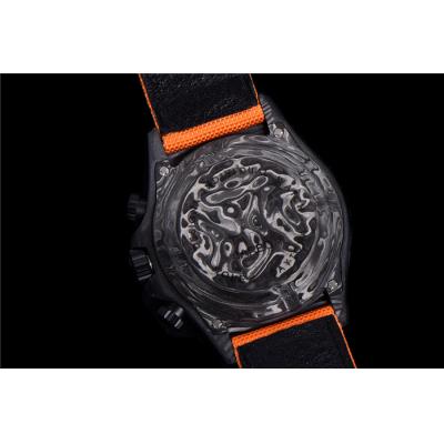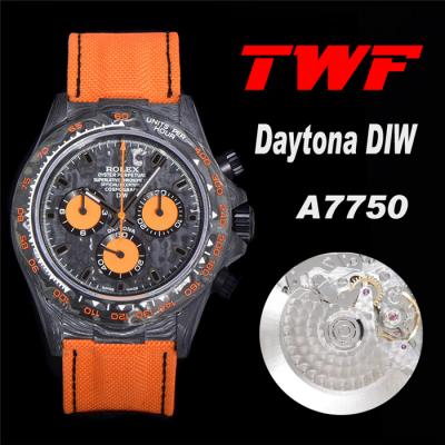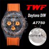 TWF Daytona DIW A7750 Automatic Mens Watch Black Case and Bezel Black Dial Orange Nylon Strap Best Edition