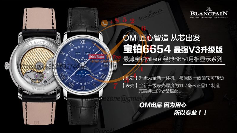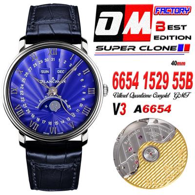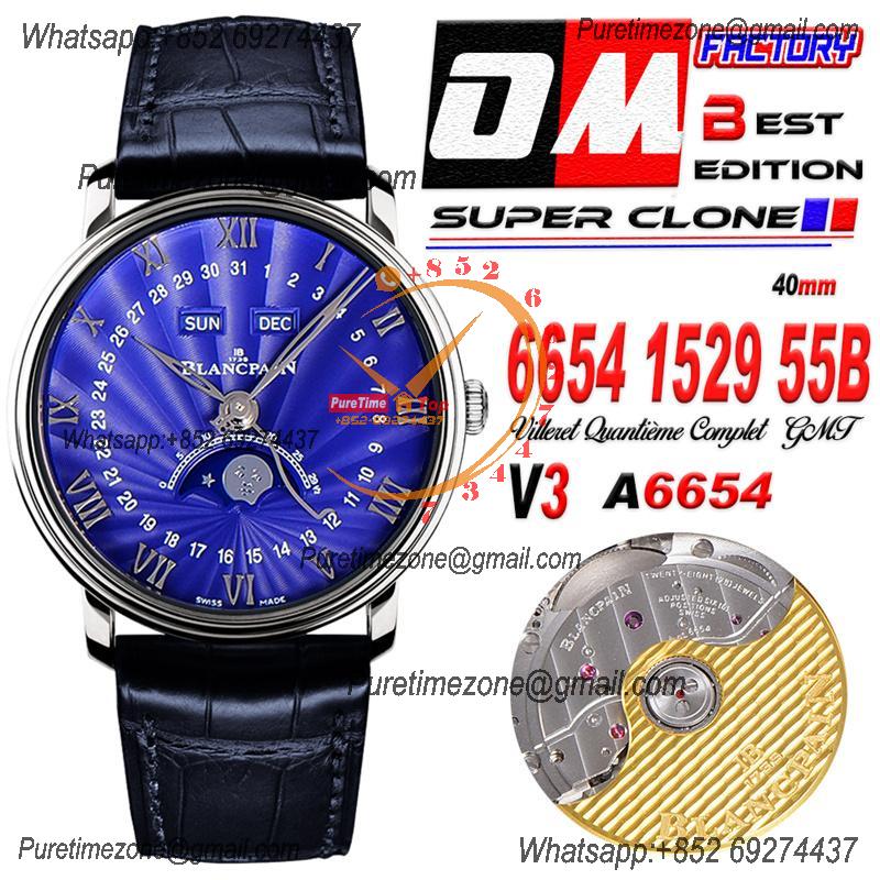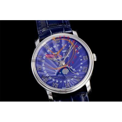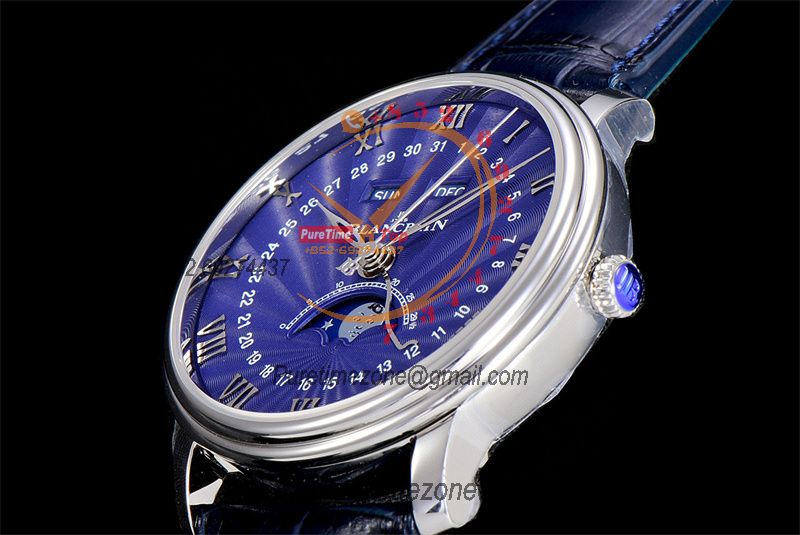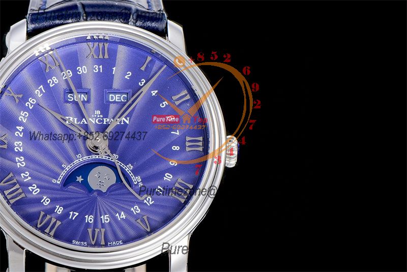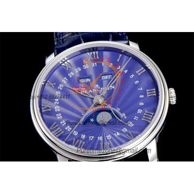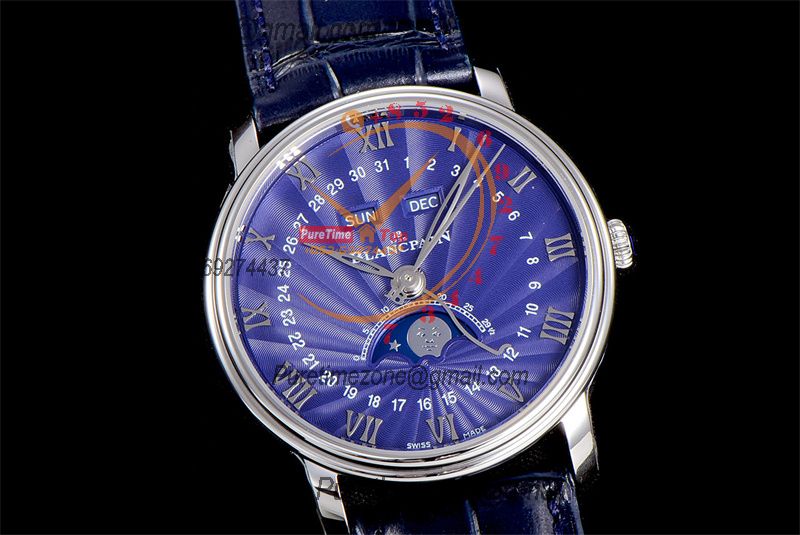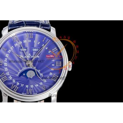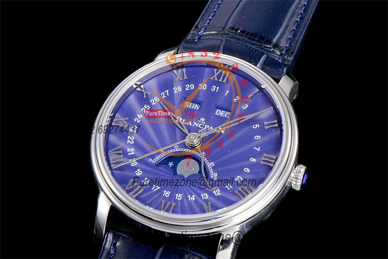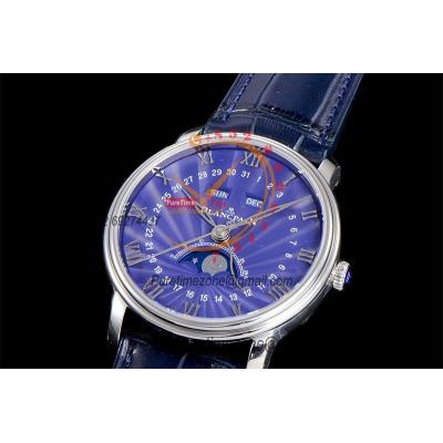 Home Blancpain Villeret Complicated Function A6554 Automatic Mens Watch Moon Phase Best Edition OMF 40 SS Blue Dial Leather CHS