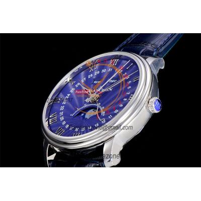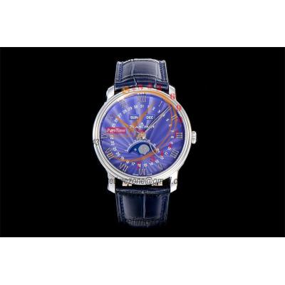Villeret Complicated Function A6554 Automatic Mens Watch Moon Phase Best Edition OMF 40 SS Blue Dial Leather CHS