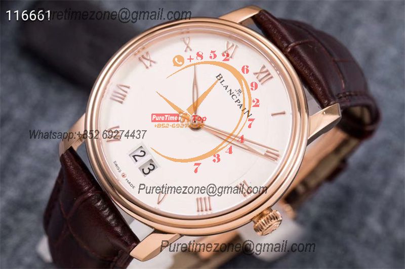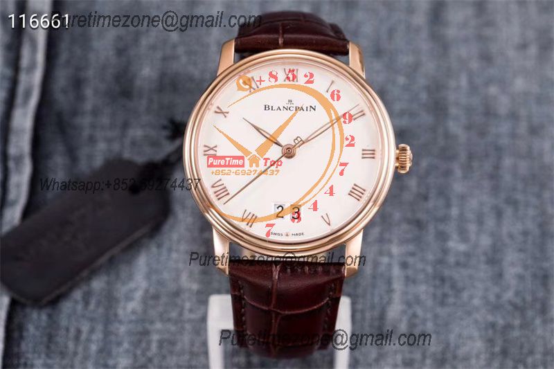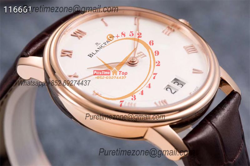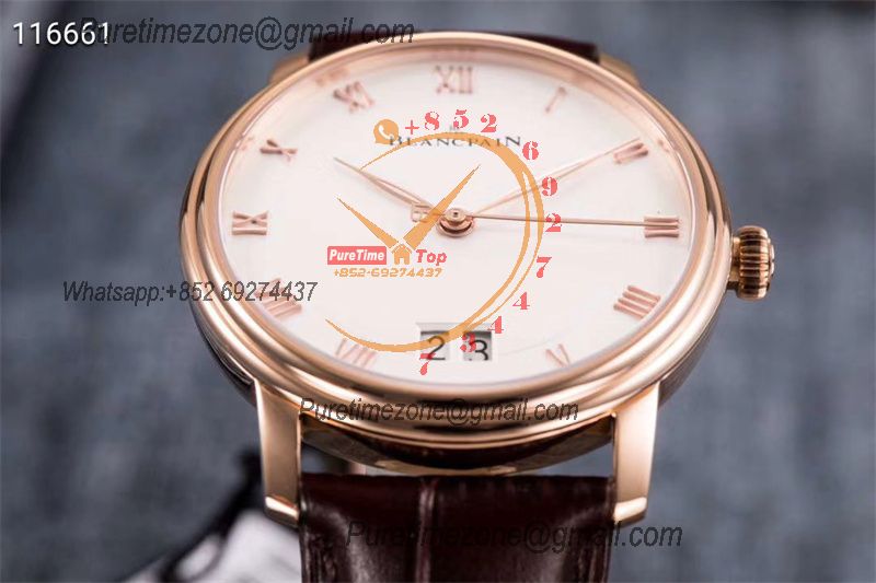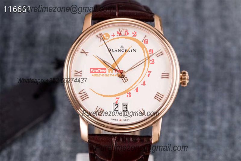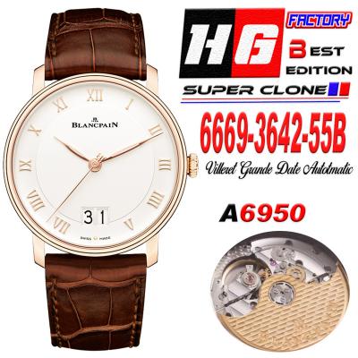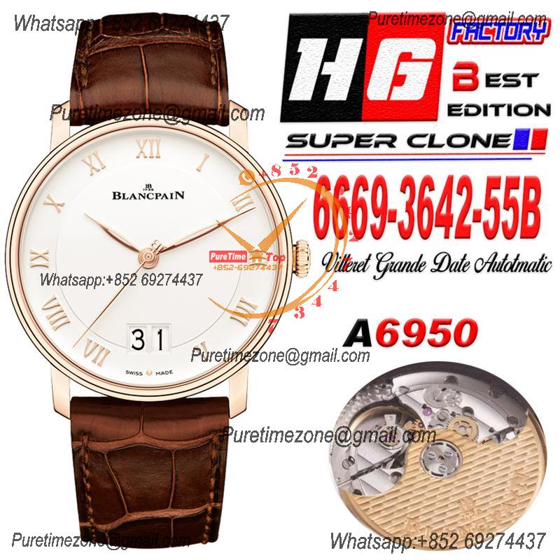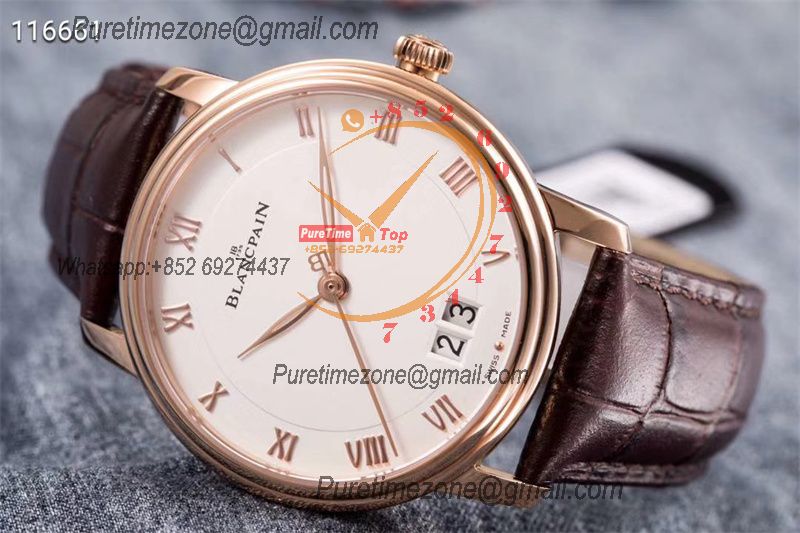 Home Blancpain Villeret Grande Date 6669-3642-55B A6950 Automatic Mens Watch Best Edition HGF 40mm RG White Dial Leahter CHS