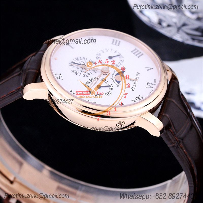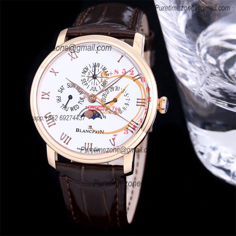 Home Blancpain Villeret Quantieme Perpetuel 6656 A5954 Automatic Mens Watch Moon Phase Best Edition TWF 40mm RG White Dial Leather CHS