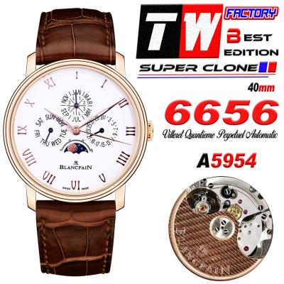 Home Blancpain Villeret Quantieme Perpetuel 6656 A5954 Automatic Mens Watch Moon Phase Best Edition TWF 40mm RG White Dial Leather CHS
