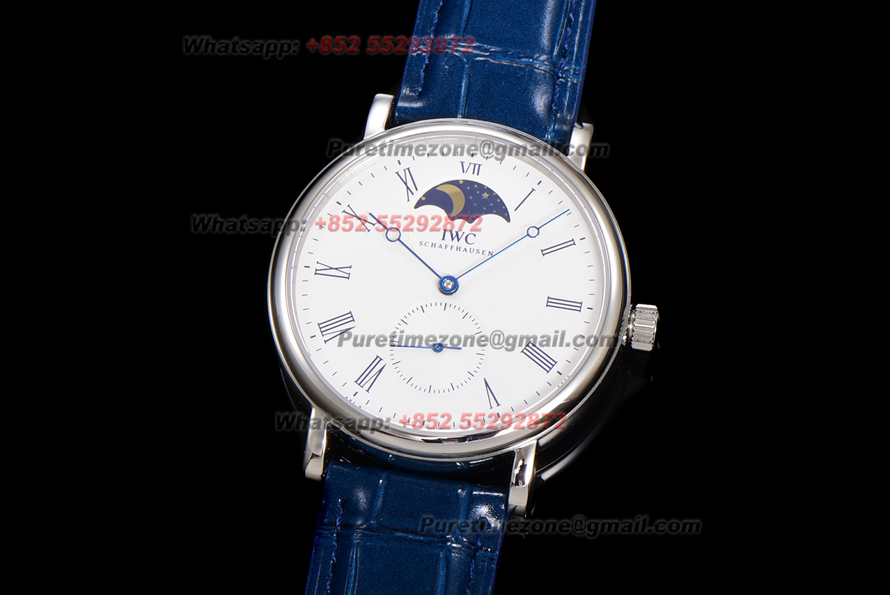 Home IWC Portofino Vintage Portofino IW544805 Automatic Mens Watch Super Clone TWF White Dial Blue Leather Strap A69355