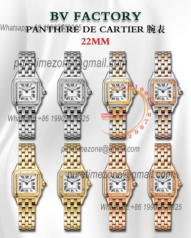 Panthère Small Model W2PN0006 Ronda Quartz Womens Watch Best Edition AF 22 YG Diamonds Bezel White Dial SS Bracelet