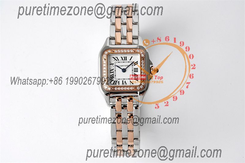 Home Cartier PANTHÈRE DE CARTIER W3PN0006 Swiss Ronda Quartz Ladies Watch BVF 22 Small Diamond Bezel Two Tone RG White Dial SS Bracelet Best Ediiton