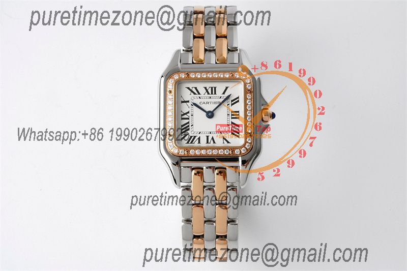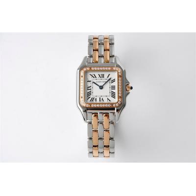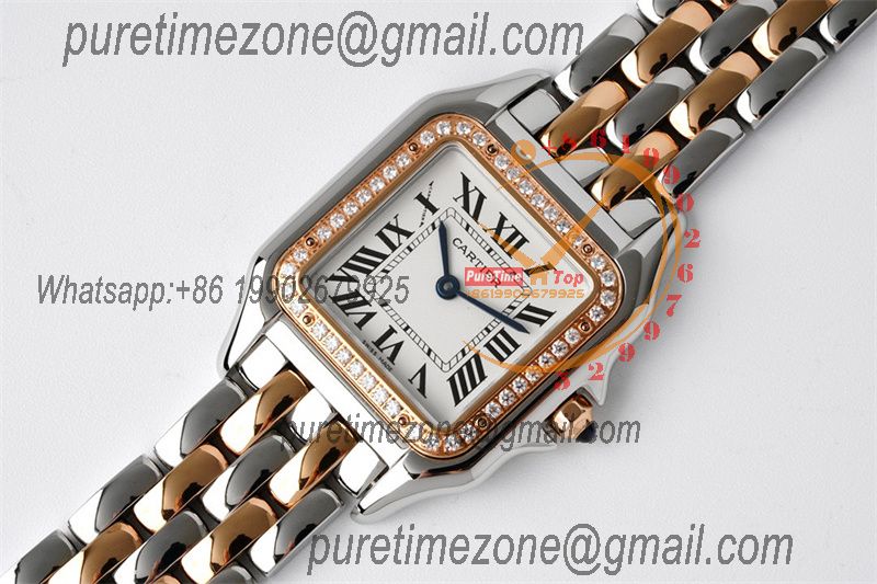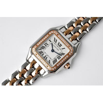 Home Cartier PANTHÈRE DE CARTIER W3PN0007 Swiss Ronda Quartz Ladies Watch BVF 27mm Medium Diamonds Bezel Two Tone RG White Dial SS Bracelet Best Ediiton