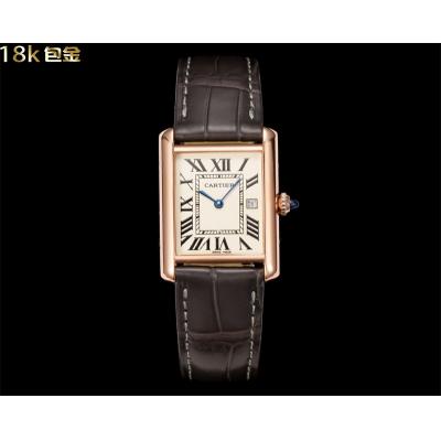Tank Louis Must 28mm W5200025 Swiss Ronda Quartz Womens Watch Best Edition AF YG Diamond Bezel White Dial Leather Ladies