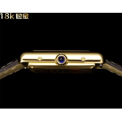 Vintage Tank Must L Wrapped 24K Yellow Gold 25.5mm Swiss Quartz Unisex Watch DRF Best Edition Red Dial Croc Leathe Strap