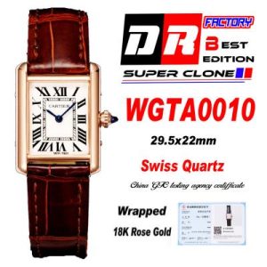 WGTA0010 Tank Louis S Wrapped Rose Gold 22mm Swiss Quartz Womens Watch DRF Best Edition White Dial Brown Croc Leather