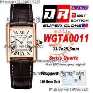 WGTA0011 Tank Louis Wrapped Rose Gold 25.5mm Swiss Quartz Unisex Watch DRF Best Edition White Dial Gray Croc Leather
