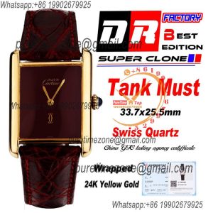 Vintage Tank Must L Wrapped 24K Yellow Gold 25.5mm Swiss Quartz Unisex Watch DRF Best Edition Red Dial Croc Leathe Strap $732.00 $610.00