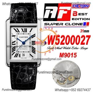 Tank Solo XL 31mm W5200027 M9015 Automatic Mens Watch Best Edition AF White Dial Black Leather Strap CHS