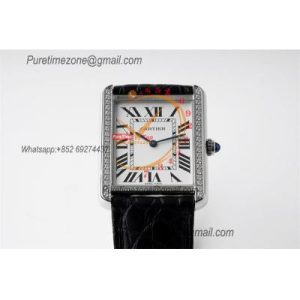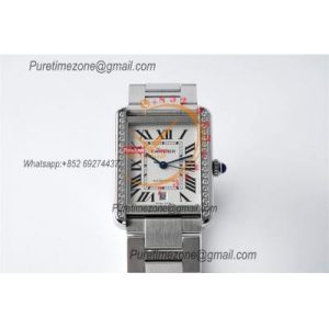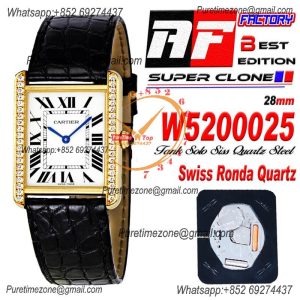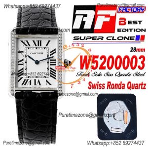 Tank Louis Must 28mm W5200003 Swiss Ronda Quartz Womens Watch Best Edition AF Diamond Bezel White Dial Leather Ladies