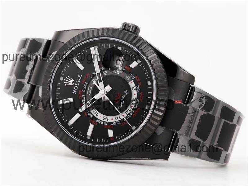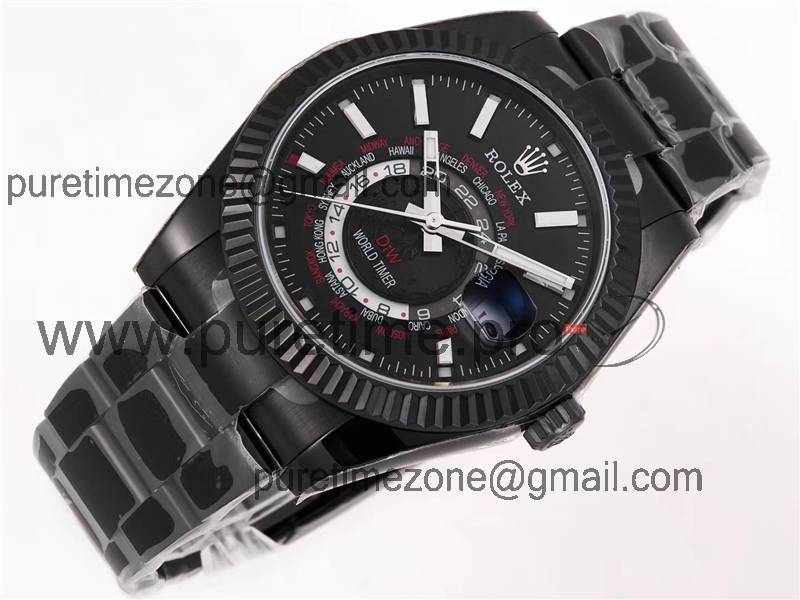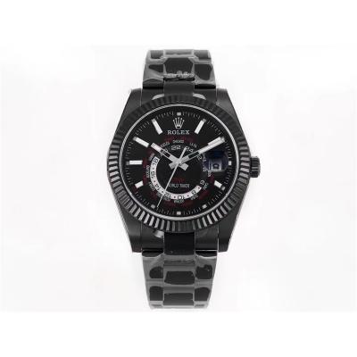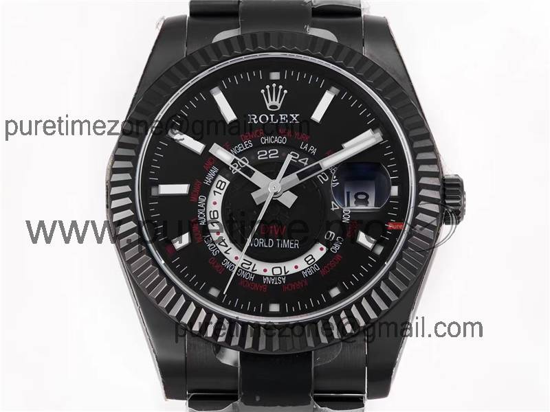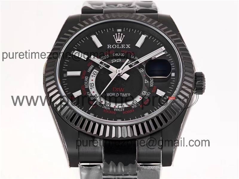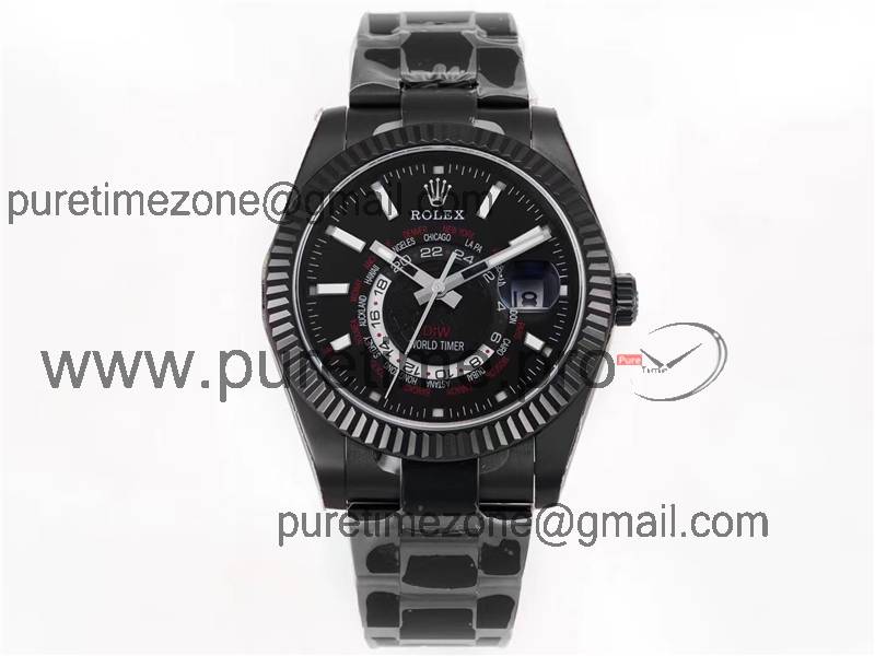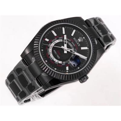 Home Rolex Sky-Dweller WWF Sky Dweller DIW Black PVD Fluted Bezel Black Dial A23J Automatic Mens Watch Super Clone