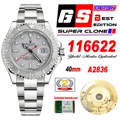 Yacht-Master 126622 A2836 Automatic Mens Watch Best Edition GSF Gray Dial Dial 904L SS Oyster Bracelet