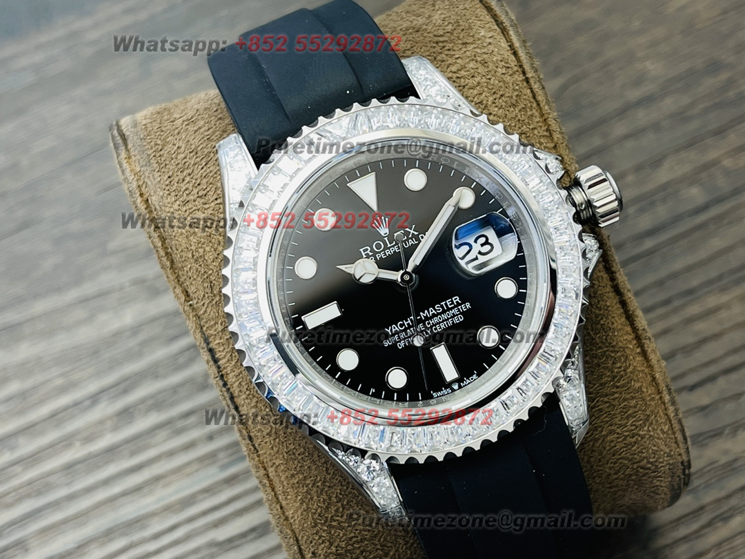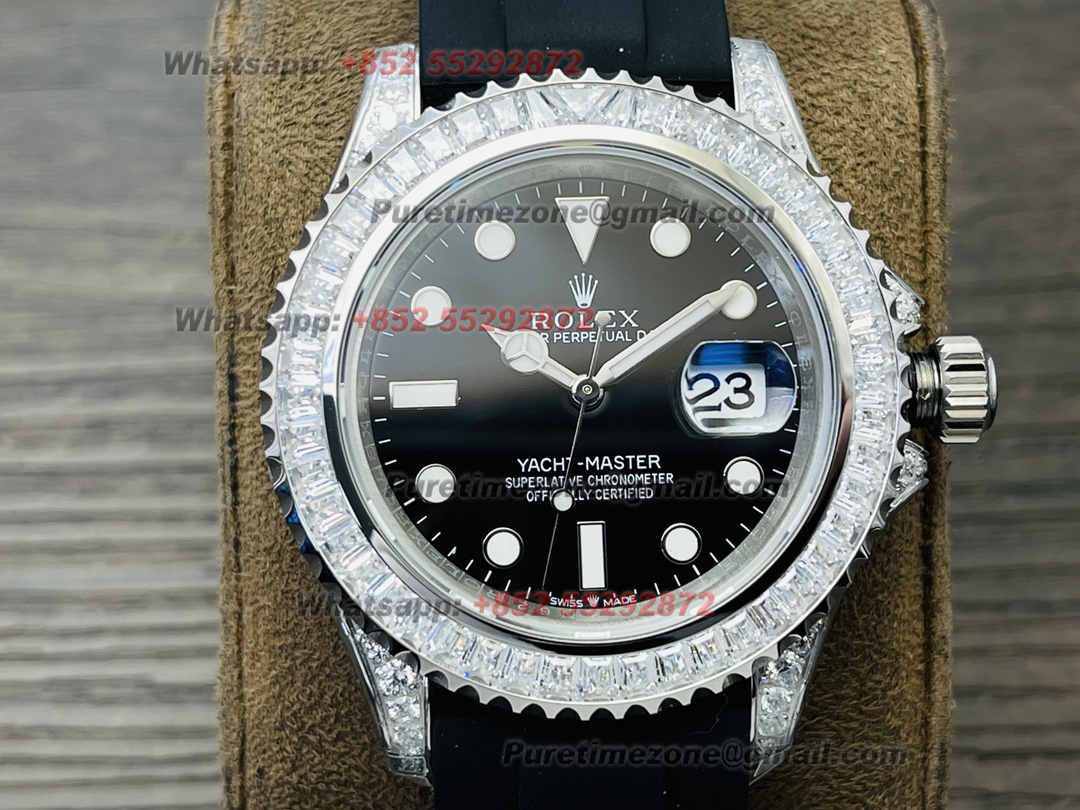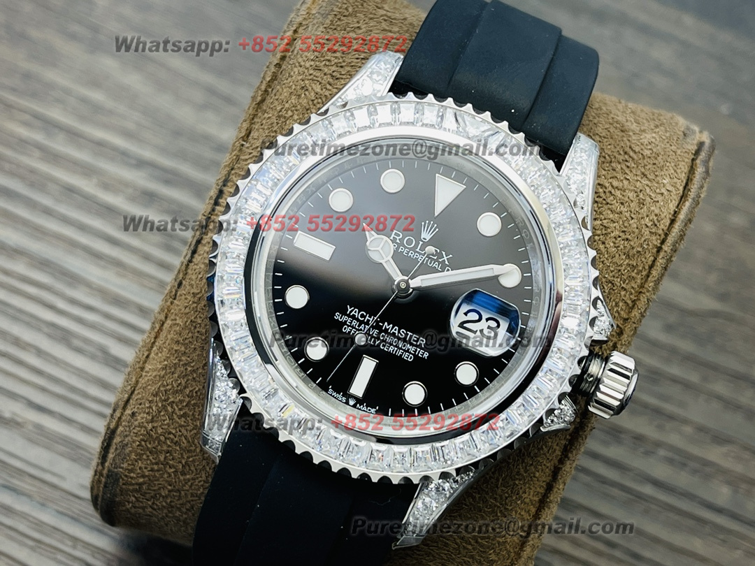 Yacht Master 226679 Automatic Mens Watch Super Clone VRF 40 Diamonds Bezel Black Dial Oysterflex Strap VR3135 CHS
