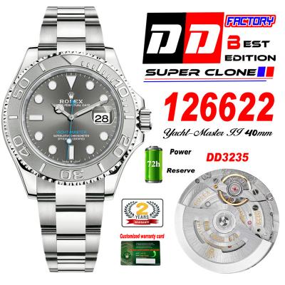 Yacht-Master 40 126622 A3235 Automatic Mens Watch Best Edition DDF Gray Dial 904L SS Oyster Bracelet