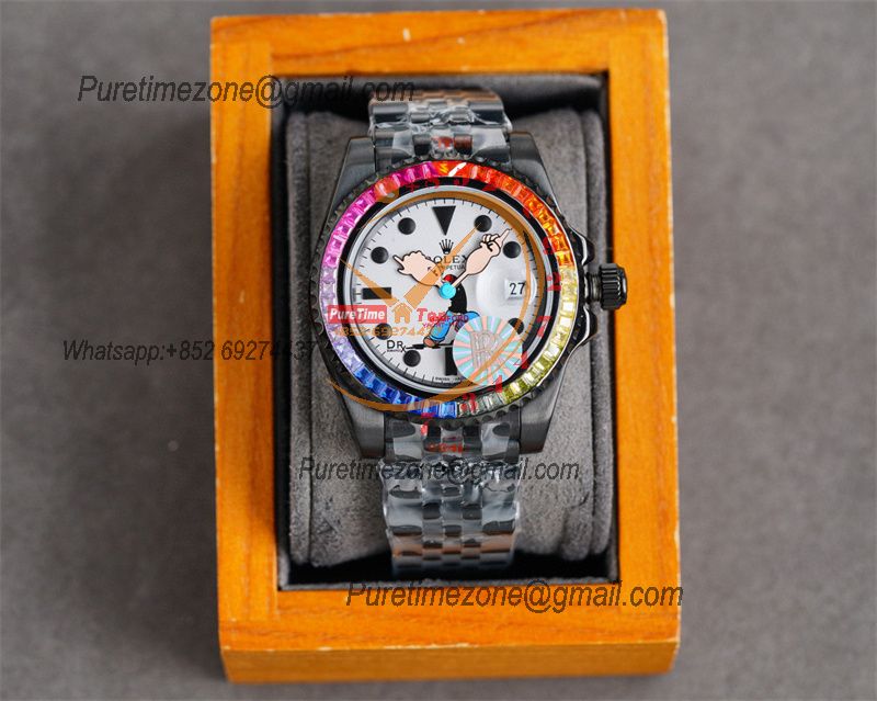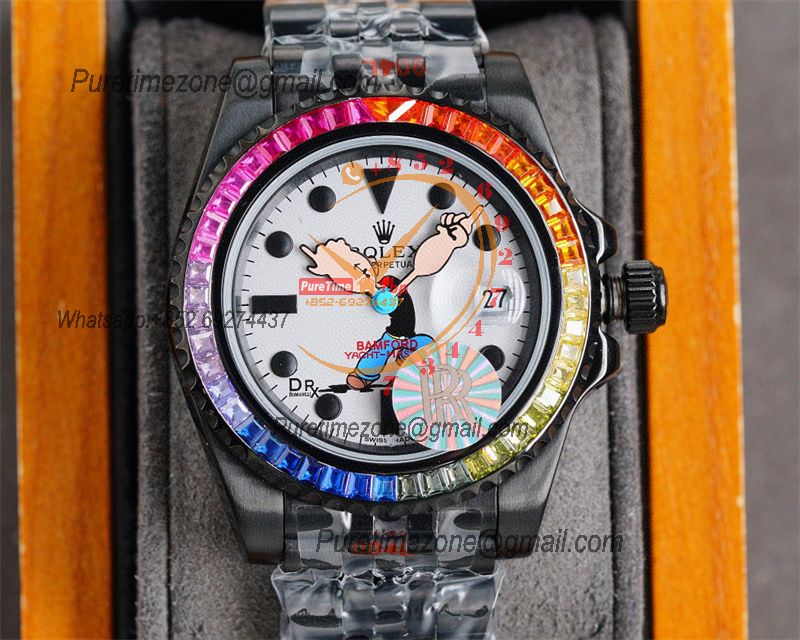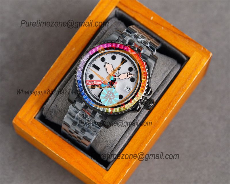 Yacht-Master A23J Automatic Mens Watch Best Edition RRF Rainbow Diamond Bezel Popeye the Sailor Dial PVD Steel Bracelet