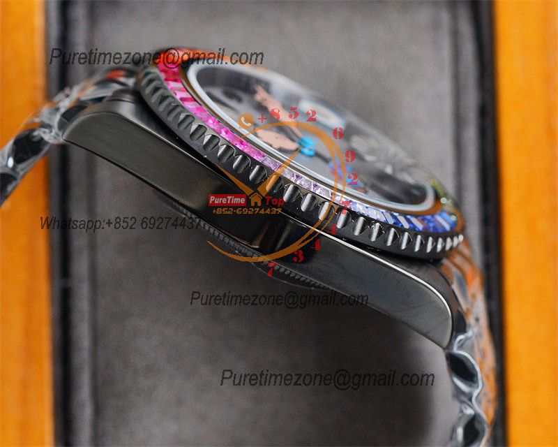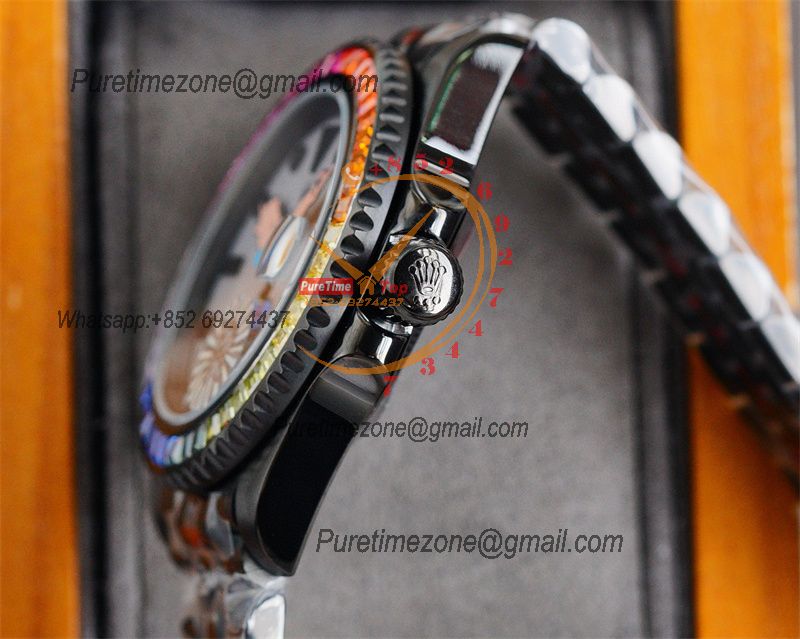 Home Rolex Iced Out Yacht-Master A23J Automatic Mens Watch Best Edition RRF Rainbow Diamond Bezel Popeye the Sailor Dial PVD Steel Bracelet