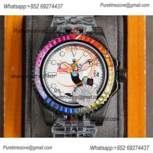 Yacht-Master A23J Automatic Mens Watch Best Edition RRF Rainbow Diamond Bezel Popeye the Sailor Dial PVD Steel Bracelet