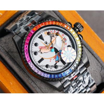 Yacht-Master A23J Automatic Mens Watch Best Edition RRF Rainbow Diamond Bezel Popeye the Sailor Dial PVD Steel Bracelet