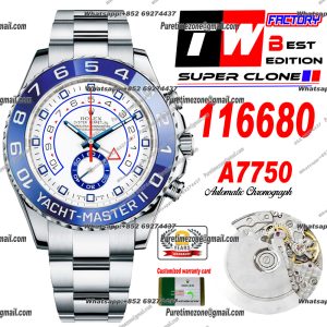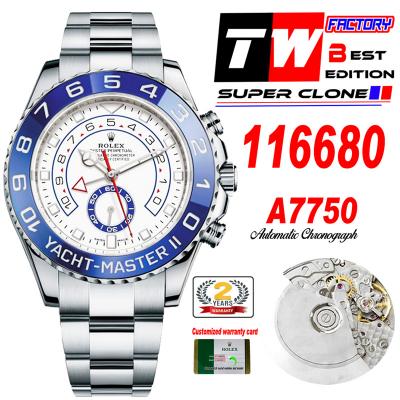 YachtMaster II 116680 A7750 Automatic Chronograph Mens Watch Best Edition TWF White Dial 904L SS Oyster Bracelet