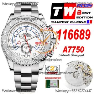 YachtMaster II 116689 A7750 Automatic Chronograph Mens Watch Best Edition TWF White Dial 904L SS Oyster Bracelet