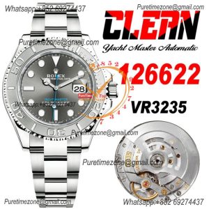 Yacht-Master 126622 40mm VR3235 Automatic Mens Watch Best Edition CLEAN Gray Dial 904L Oyster SS Bracelet CHS