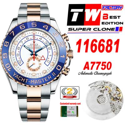 YachtMaster II 116681 A7750 Automatic Chronograph Mens Watch Best Edition TWF SS/RG White Dial 904L SS Oyster Bracelet