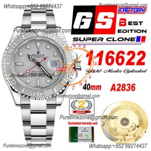 Yacht-Master 126622 A2836 Automatic Mens Watch Best Edition GSF Gray Dial Dial 904L SS Oyster Bracelet