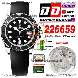 Yacht-Master 42 226659 A3235 Automatic Mens Watch Best Edition DDF 3D Ceramic Bezel Black Dial Oysterflex Strap