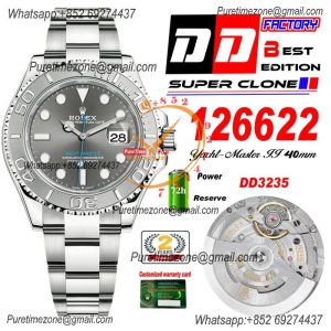 Yacht-Master 40 126622 A3235 Automatic Mens Watch Best Edition DDF Gray Dial 904L SS Oyster Bracelet