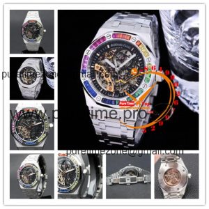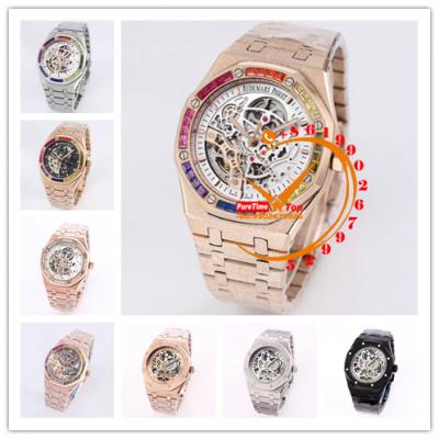 Z01A Royal Oak 15407 Rainbow Diamond Bezel Skeleton Dial Stainless Steel Bracelet 20 styels