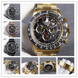 Replica Cosmograph Daytona A21J Automatic Mens Watch Skeleton Dial Oyster Bracelet Yellow Gold B E140